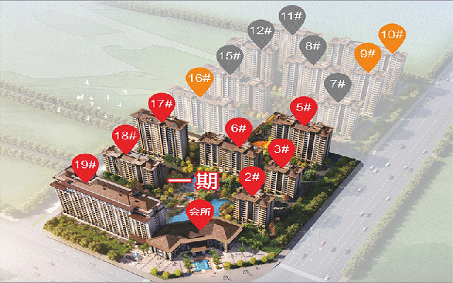 容积率:1.5 绿地率:大于36% 总栋数:16栋 层高:11/14/15/18层